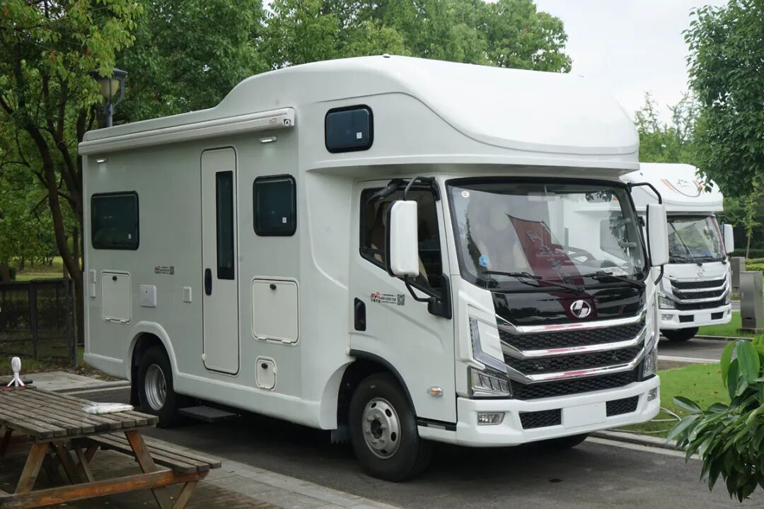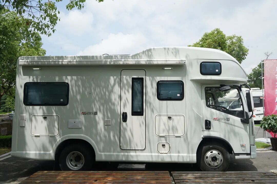 这款房车是基于上汽跃进H500底盘打造的,虽然视觉感给人很庞大的感觉,但是全车的长度依旧符合上蓝牌的规定,整长为5900mm。