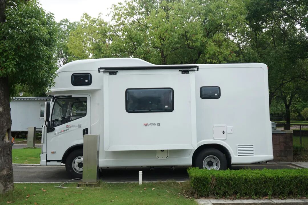 作为一辆带有拓展机构的轻卡房车整车的车身外部并没有过多花哨的配置,只提供了简单的储物舱、外置燃气灶、遮阳棚和水电接驳口,保证了车厢的完整结构。