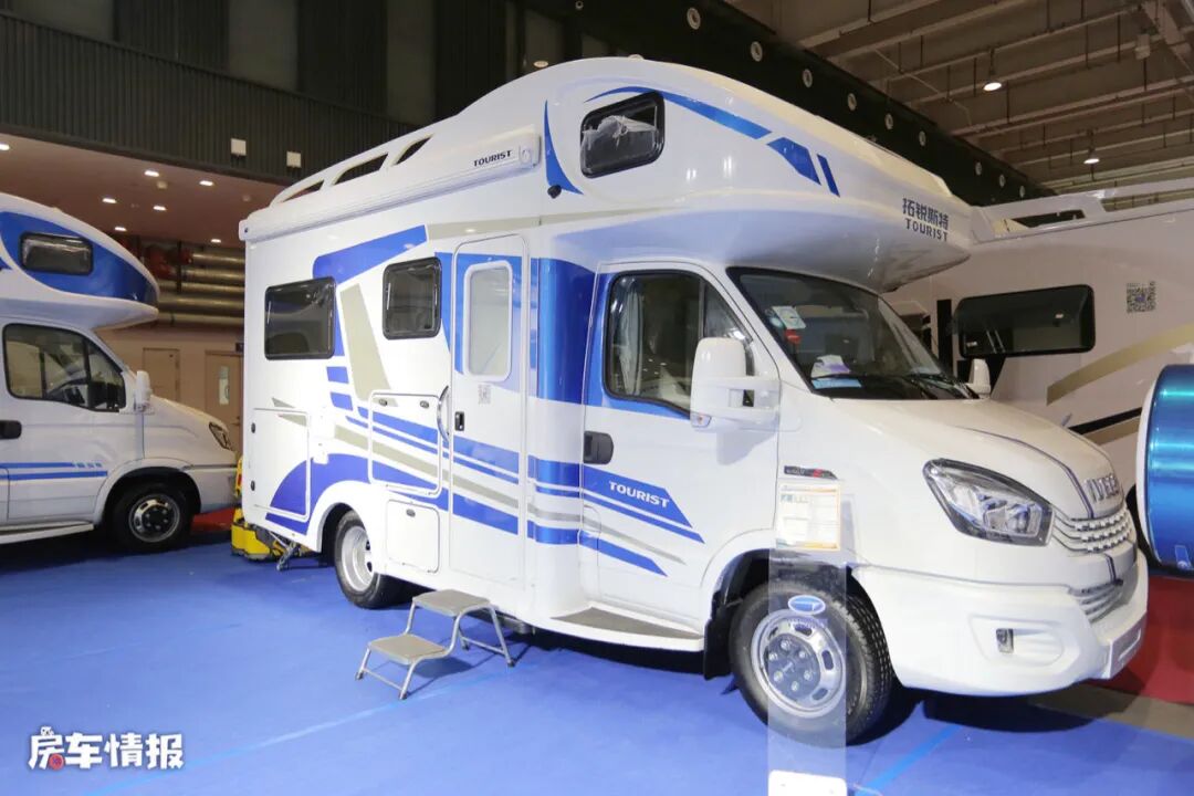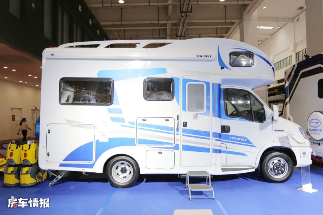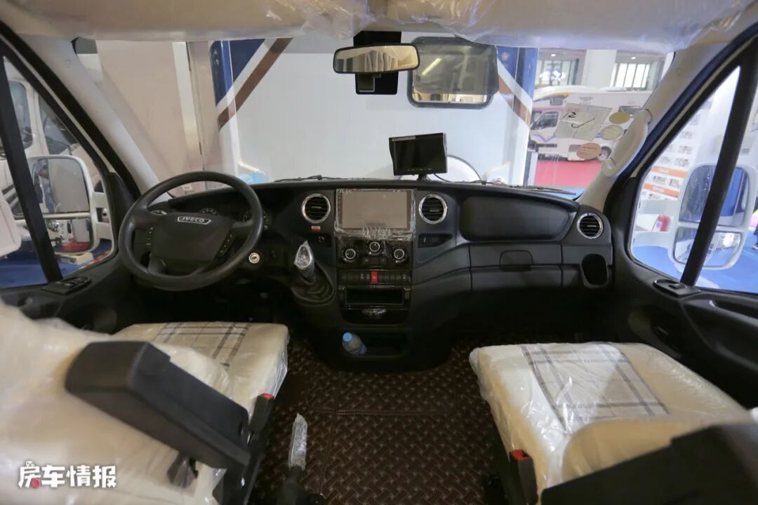 这款房车是基于2021最新款依维柯欧胜底盘打造的,点阵式的全新中网设计也带来了更加时尚简约的感觉,整体的白蓝色外观也突显了这款房车的清新感。