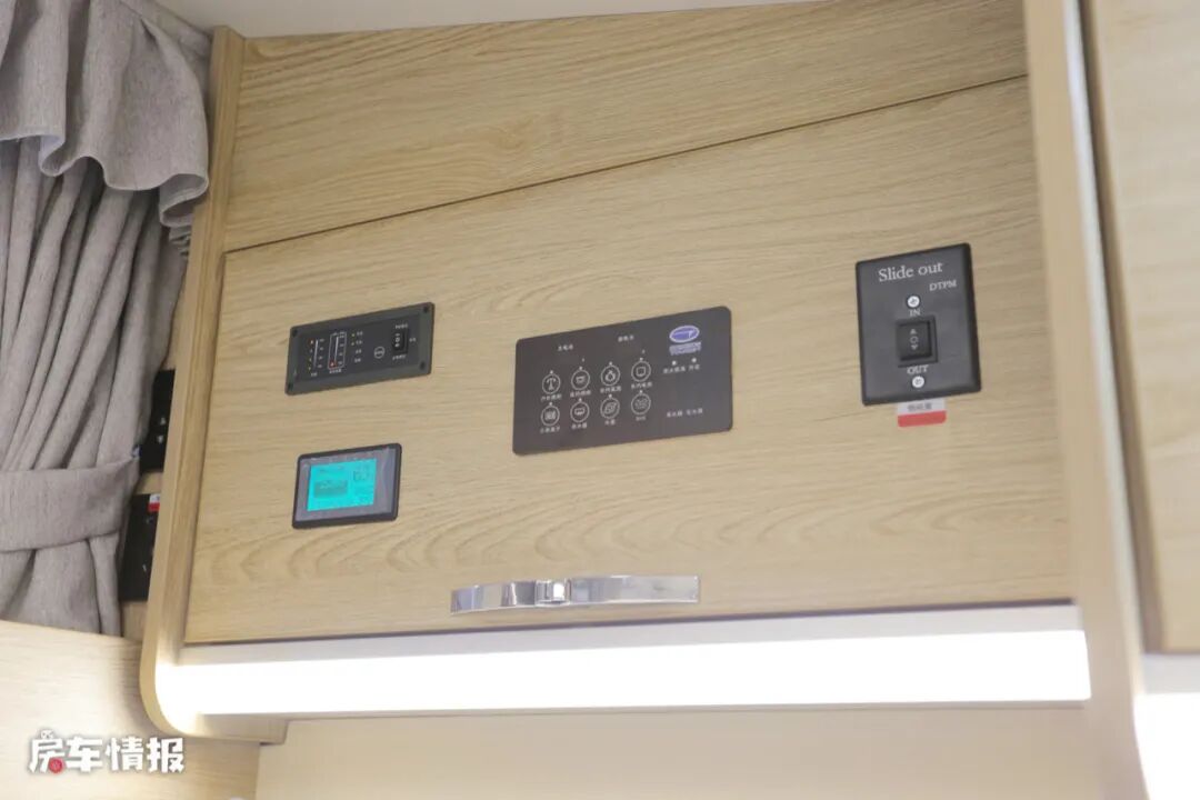 电路上,这款房车搭载了一台3000W的逆变器,提供400Ah的锂电池,并配备了两块太阳能电池板,后期有更多的用电需求也可选装800Ah的锂电池或更多数量的太阳能电池板;水路上则提供了230L的净水箱和70L的灰水箱,完全可以满足出行的用水用电需求。