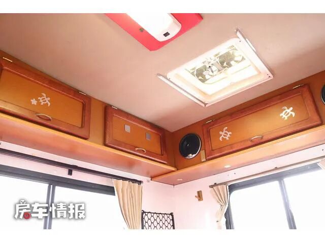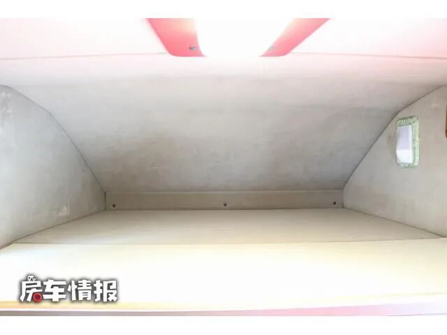 除去这张沙发床之外,在驾驶室顶部的大额头区域内,还提供了一张额头床,整床的尺寸为1550mm*1400mm,虽然大人可能无法躺下,但是睡下两个小朋友还是可以的。