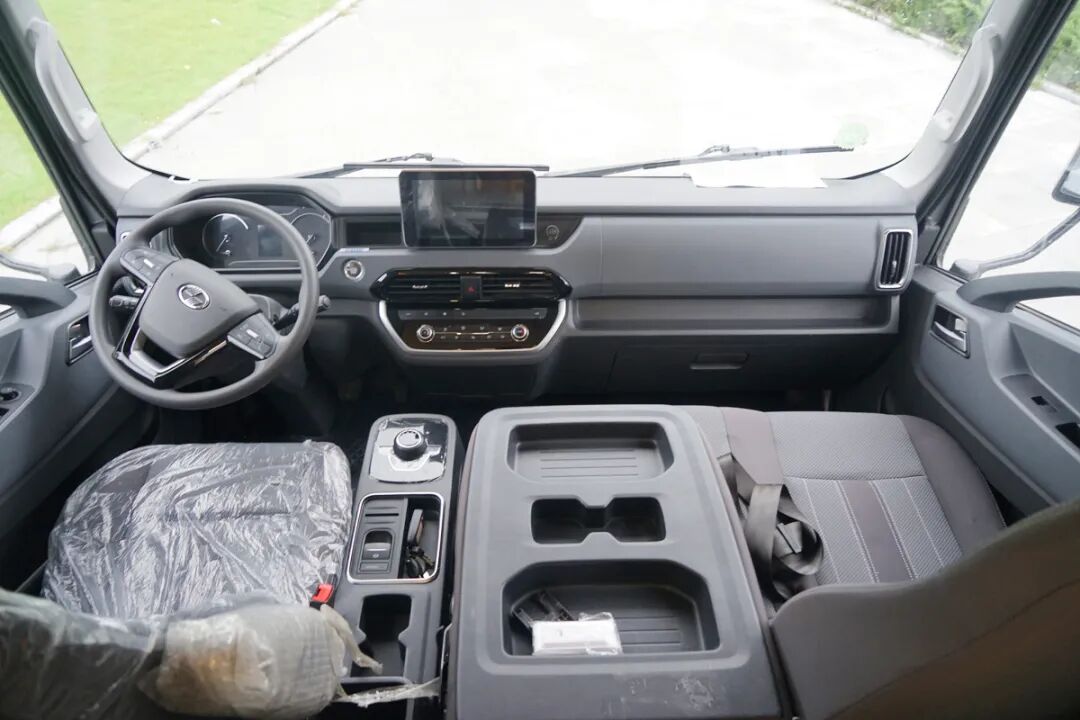 驾驶室内部非常的简洁,当然并不意味着配置也简单,同样提供了多功能方向盘、中控彩色显示大屏以及一些安全驾驶辅助系统,可以使驾驶员得到更便捷的操控驾乘感。