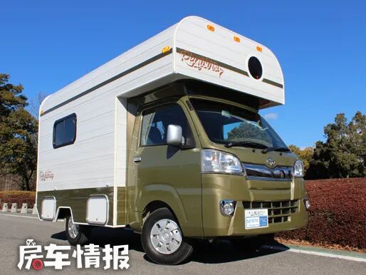 这是一款基于丰田Pixis(皮克斯)卡车底盘所打造的房车,与我们之前介绍的以丰田海狮和CamRoad轻卡底盘所打造的房车完全不同,整车的尺寸你也绝对意想不到,它的长度只有3850mm,宽度为1770mm,而即便采用了大额头式设计的高度也不过才2500mm,照片中看着感觉像是一辆庞然大物,实则不然。
