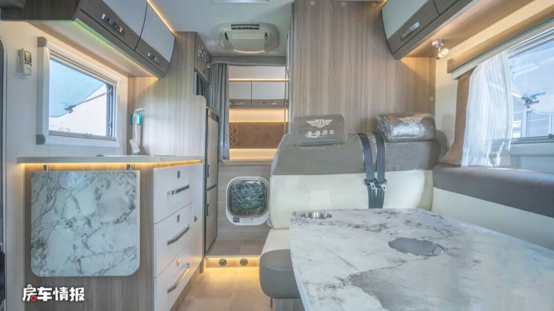 动力上,这款房车搭载了一台3.0T的柴油发动机,匹配8AT变速箱,最大功率为125kW,输出最大扭矩为400N·m,满足最新的国六排放标准,平时持C本就可以驾驶。