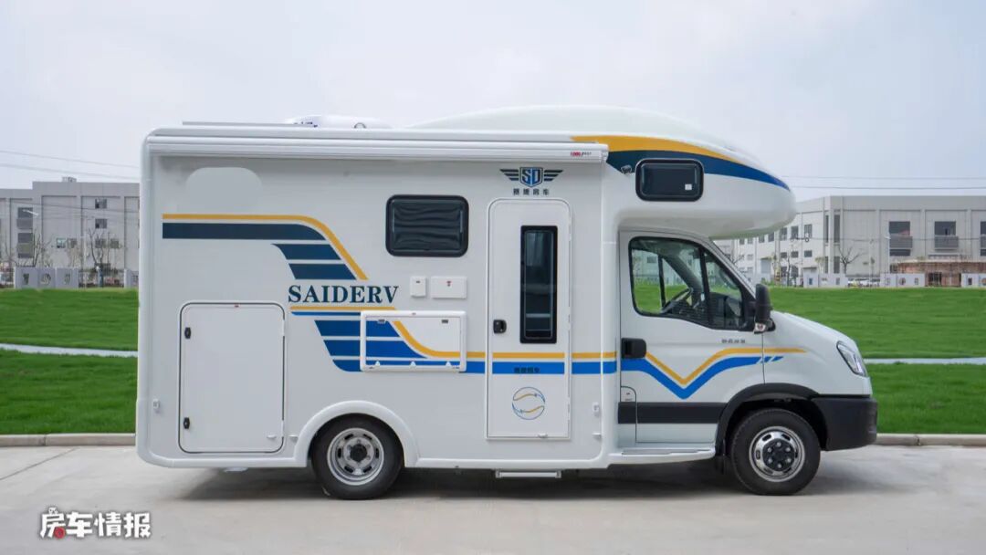 这款房车是搭载依维柯欧胜底盘所打造的,外观采用了经典的黄蓝色条装饰,更突显了简洁与年轻化,圆润的大额头也提升了整体的造型美观,整车的长宽高尺寸为5995mm*2450mm*3150mm,车身轴距3300mm,临近6米的车身长度也符合上蓝牌的规定,同时全车的后轮距也加宽到了1538mm,可以使整体的驾驶感更加平稳。