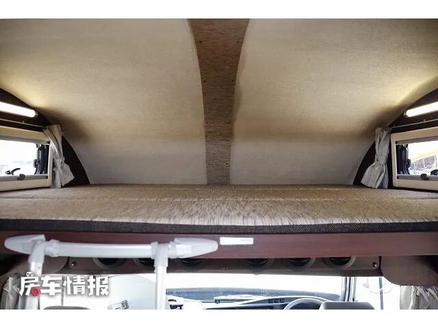 前方驾驶室上方的额头区域内带有一张额头双人床,也可以为两个人提供睡觉的地方,左右带有外推窗也保证了此区域的采光和通风。