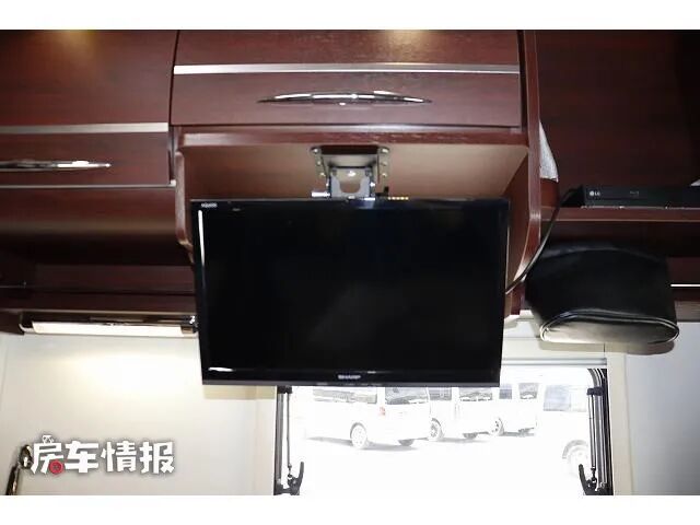 在厨房区顶部的储物吊柜下还带有一台可翻折的液晶电视,为日常的生活提供娱乐所需。