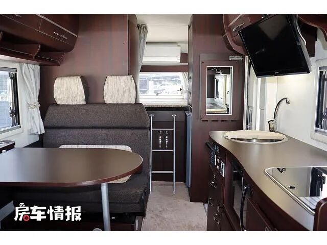 车内部并不是采用了一个主流的日本房车布局,而且因为使用了深色系的家具,总体来说还是匹配的上时尚的外观的。