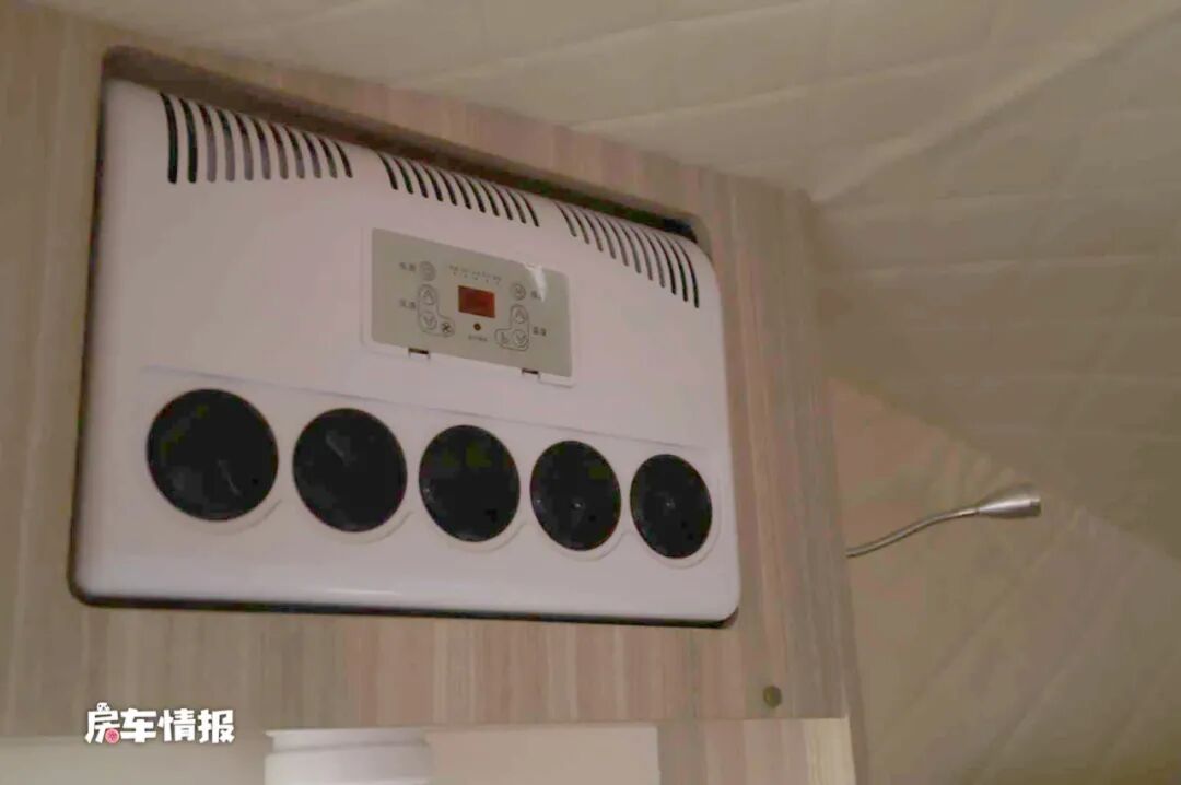 在水电方面,这款房车搭载了一台2000W的充逆变一体机,匹配200Ah的硬盒太阳能板,并提供了100Ah的胶体电池。水路上则提供了80L的净水箱。除此之外,全车还配备了12v新能源电动空调,房车专用驻车加热器和16L的燃气热水器,并提供总控开关。