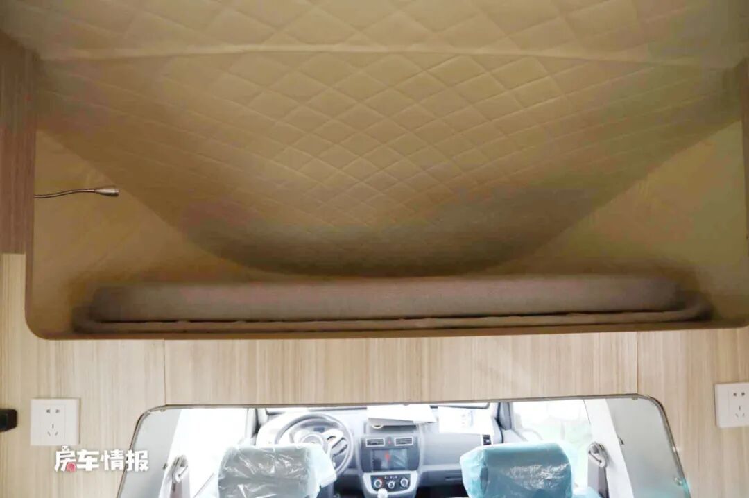 除去乘客区的沙发卡坐床,在前面驾驶室的上方还提供一个1800*1200(mm)的双人额头床,能够容纳两个成年人休息使用。