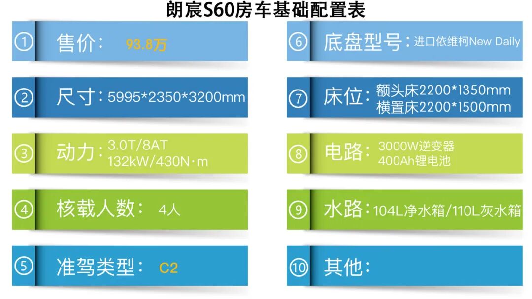 这款搭载了进口依维柯底盘,并且全部采用进口上装材料的朗宸S60房车,现在的售价为103.8万元,结合整车的配置,这样的价格在众多进口房车中已经算是性价比很不错的了,不知道您觉得如何呢?