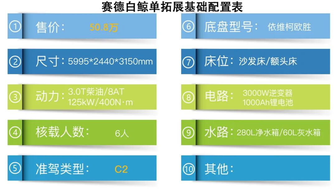 这款采用了全新配色方案的赛德白鲸单拓展房车,现在的官方指导价为50.8万元,不知道您觉得这个价格如何呢?如果您想了解更多的国内外房车资讯,请继续关注我们,下期再见~
