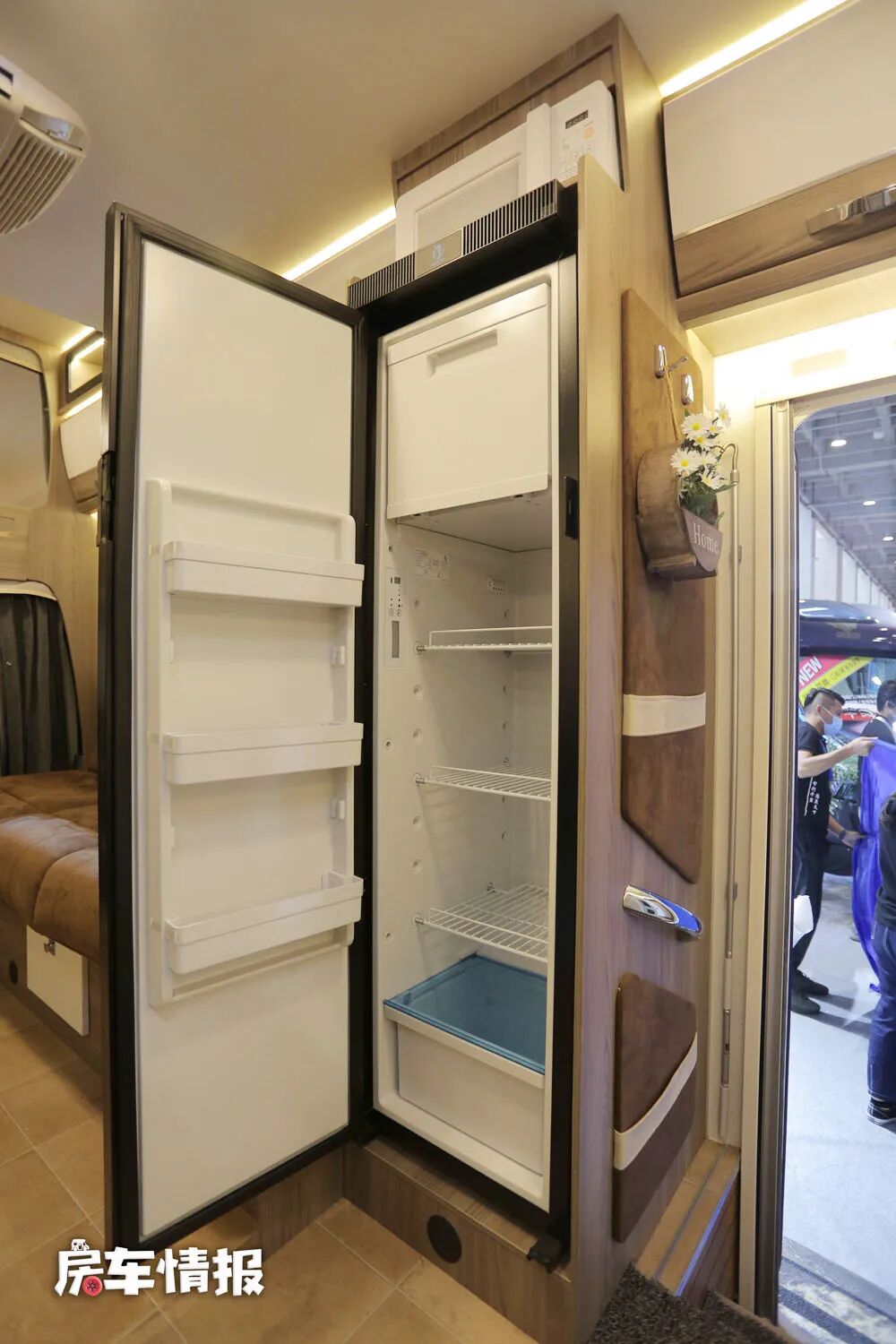 乘客门前方取消了常见的小台面,取而代之的是一台152L大容量的冰箱,内部带有单独的冷冻空间,可分类存放食材。不过冰箱上方的微波炉对于个子娇小的朋友似乎不太友好。