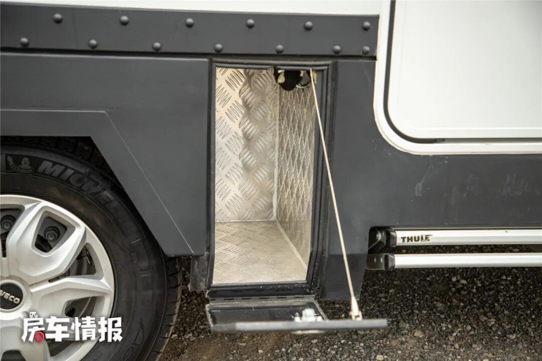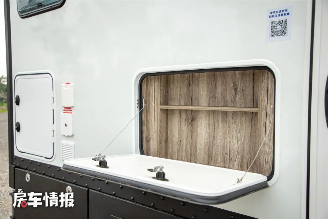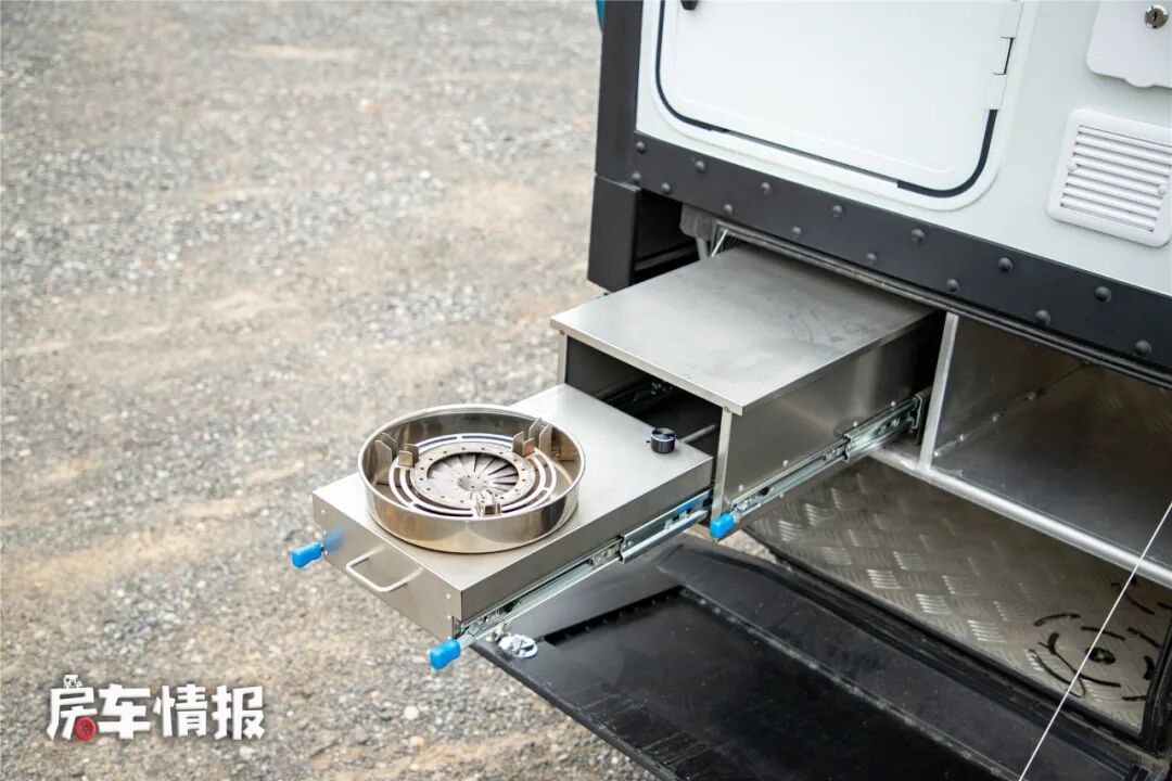 另外在车身厢体的下包围里,还隐藏着多个储物箱和外置抽拉炉灶,美观性和实用性兼具,是个不错的设计。