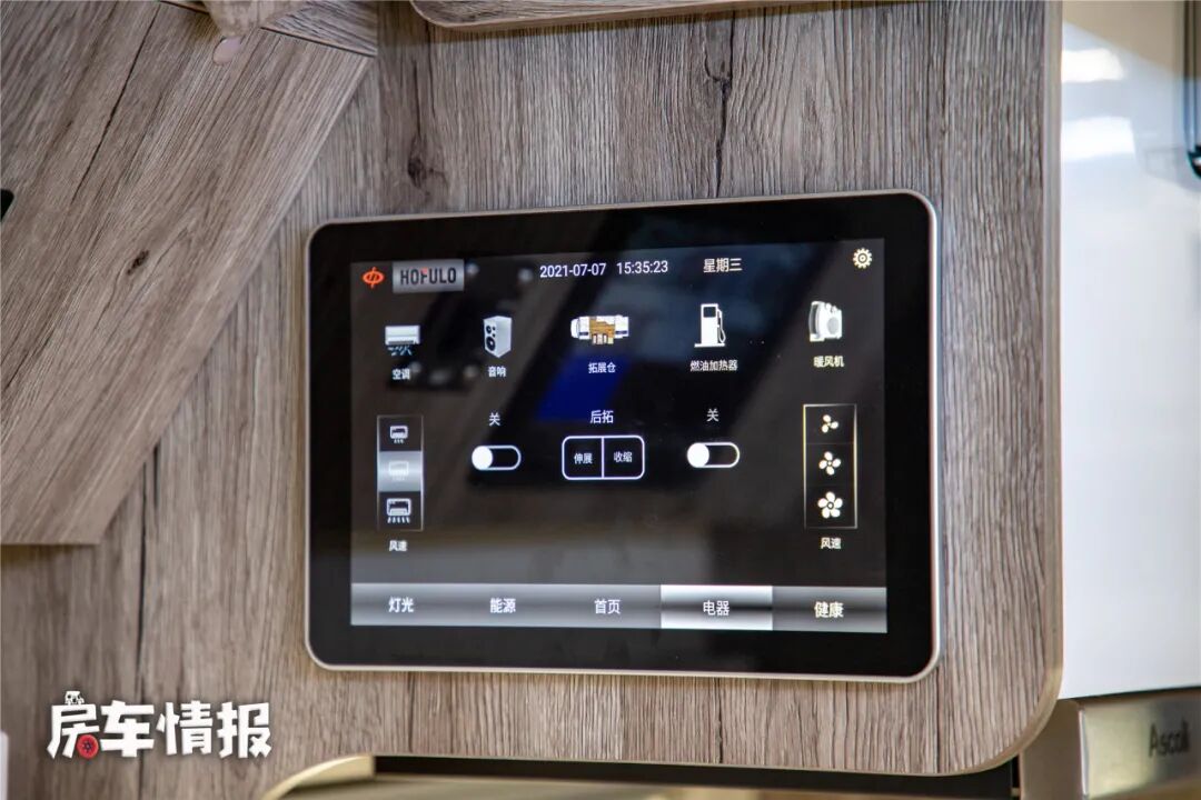 在电力系统用方面,这款车采用24V房车电源管理中心,提供了400Ah锂电池、3000W逆变器、700W太阳能板,相当于整车带有10度电,一家四口出去玩,用个三四天完全不用担心。