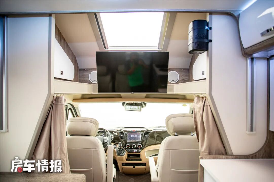 由于整车采用了小顶设计,为此驾驶室上方并没有提供额头床,而是变成了一个开放式空间,既提升了生活区的通透感和采光性,同时也可以存放一些物品。