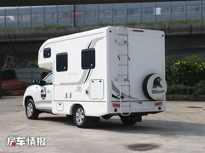 车尾处带有爬梯和备胎,同时也配备了倒车影像和倒车雷达。