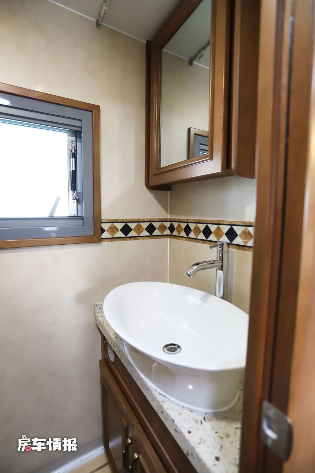 全车相较于其他类型的房车,在外观上更加的威猛霸道,全车采用三点式浮动平衡副车架系统,车厢采用了三明治复合板材结构,外层为超高强度玻璃纤维FRP,中层为高密度阻燃保温板,内层为环保内饰板材。
