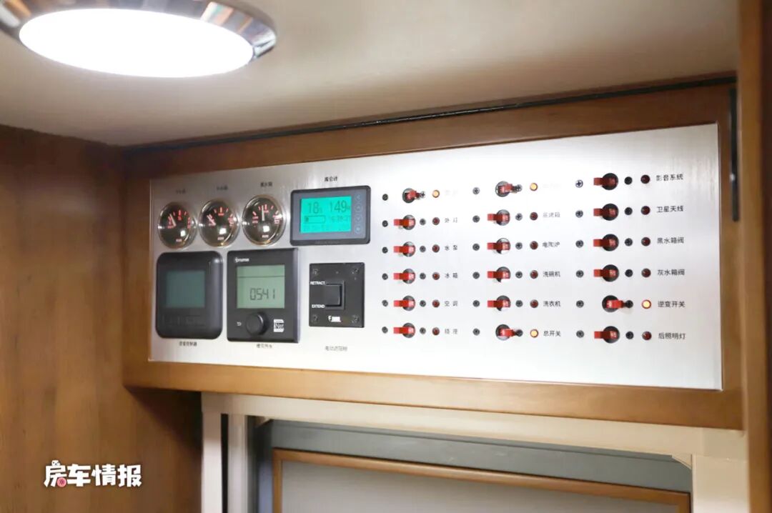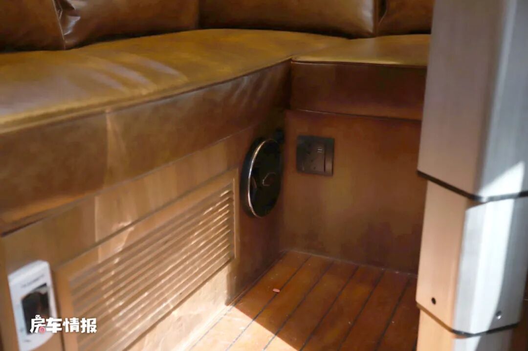 空调方面,整车提供了一台3000W的低置冷暖空调,匹配燃油暖风热水一体机,并提供地板辅助电加热功能。换气扇也全部采用的是静音并带有雨水感应功能的换气扇,带有遥控器和触摸式两种控制模式,提供10挡风速控制,并带有防蚊虫滤网。