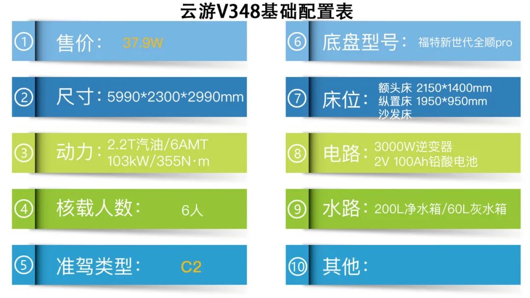 这款全新的搭载福特新世代全顺pro底盘所打造的云游V348房车,现在的官方指导价为37.9万元,不知道对福特底盘感兴趣的朋友们看完了整体的配置之后觉得如何呢?欢迎在下方的评论区和我们留言互动,下期再见~