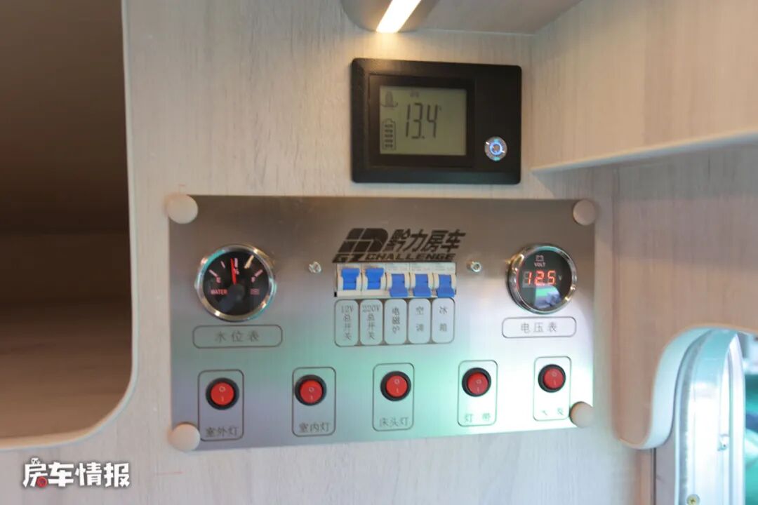 在电路上,这款房车搭载了一台3000W的逆变器,提供600Ah的锂电池,同时顶部还配备了600W的太阳能电池板;水路上则提供了120L的净水箱和30L的灰水箱,也满足两个人出行的用水用电需求。