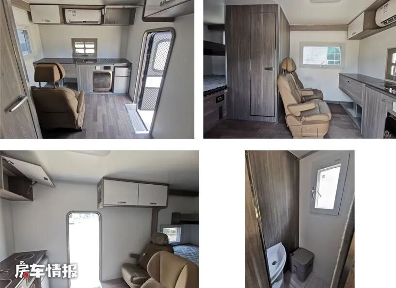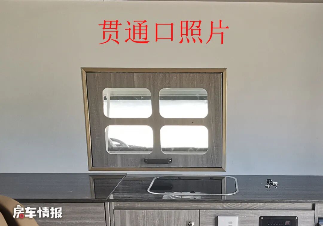 通过公示图可以看到,生活区的空间受到了一定限制,但还算宽松,简单的家具也属于主流的设计范畴,比较有意思的是位于车厢前方还设计了一个和驾驶室相通的贯通口,前后车厢交流或者传递物品都是没有问题的。