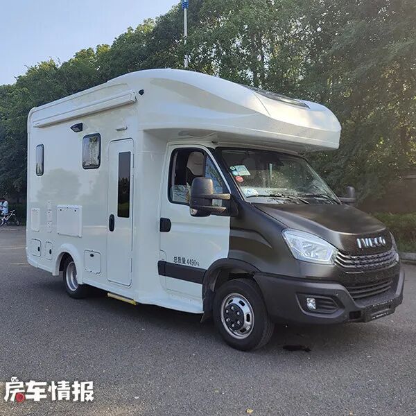 这新车基于南京依维柯欧胜底盘打造,采用C型车身设计,长宽高分别为5980*2390*3120mm,满足C本蓝牌驾驶,动力上依然是3.0T柴油发动机,匹配8AT变速箱,最大功率125kW,最大扭矩400N·m,满足国六排放。