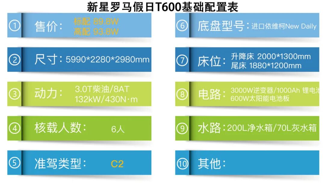 这款基于进口依维柯New Daily底盘所打造的罗马假日T600房车,标配价格为89.8万元,高配现车价格为93.8万元,不知道结合整体的配置,您觉得如何呢?欢迎在下方的评论区和我们留言互动,下期再见~