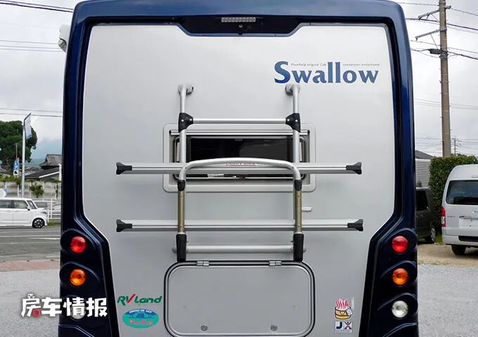 整车外部的配置比较简洁,带有遮阳棚、大尺寸储物舱、水电接驳口以及自行车架,可以满足有多种爱好的朋友使用。