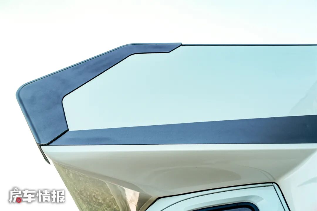 除此以外车身外部也提供了比较齐全的外部设备,手动遮阳棚、电动踏步、登车扶手、快充电源接口等,其中最吸引我的就数这个可以上掀的车侧窗,和常规的外推窗相比,这个窗户可以连带一部分墙体一起推开,增加了该区域的采光面积,就像一个售卖车一样,如此一来,喜欢钓鱼的朋友,完全可以坐在车里钓鱼~