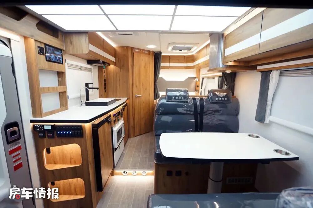 在动力方面,这款房车搭载的是一台3.0T的柴油发动机,匹配8AT变速箱,最大功率为132kW,最大扭矩为430N·m,满足最新国六排放标准,平时持C本驾照就可以驾驶。