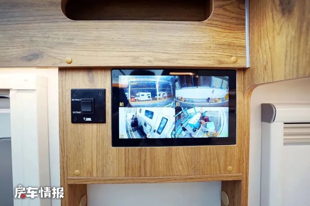 在厨房区还可以看到整车的四路监控面板,可以随时随地的观察车辆周围的情况。