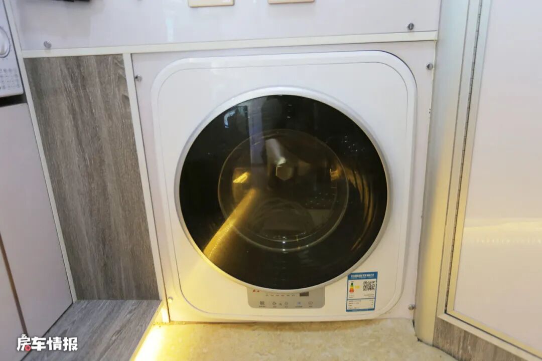 另外在台面下方还有一台洗衣机,可以洗洗轻薄的衣物,保持个人卫生的整洁。