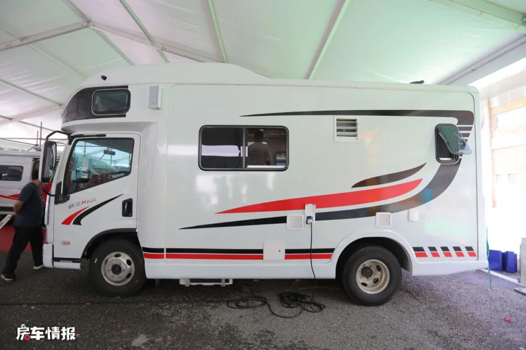 这是一款基于上汽跃进H500轻卡底盘所打造的房车,在外观上就区分于普通的依维柯和大通底盘房车,平头式的设计更彰显了霸气感。虽然感觉身材高大,但其实整体的尺寸还是处于一个可上蓝牌的规定内,为5990*2450*3100mm,高度虽然超过了3米,但其实还是比一些大额头的C型房车稍矮一些的。