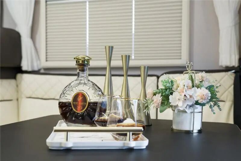 纪念版Y9的内饰风格整体焕新,与以往的色彩搭配完全不一样,以深浅撞色为主旋律,视觉效果更舒适,整个内饰选择了环保木质组合家具,进口环保防火地板革,E0级环保标准。内饰亮点如下▼