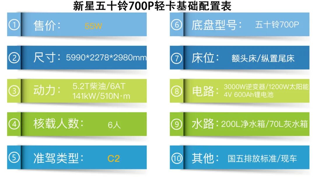 这款基于五十铃700P所打造的新星轻卡房车,整车的配置还是比较齐全的,水电容量也足够平时需求,现在国五排放标准的现车仅此一辆,抄底价格为55万元,国六版价格59玩,不知道您觉得如何呢?