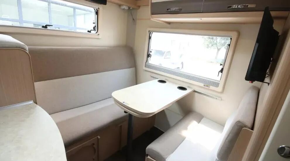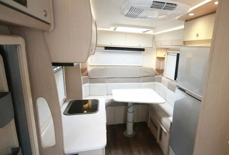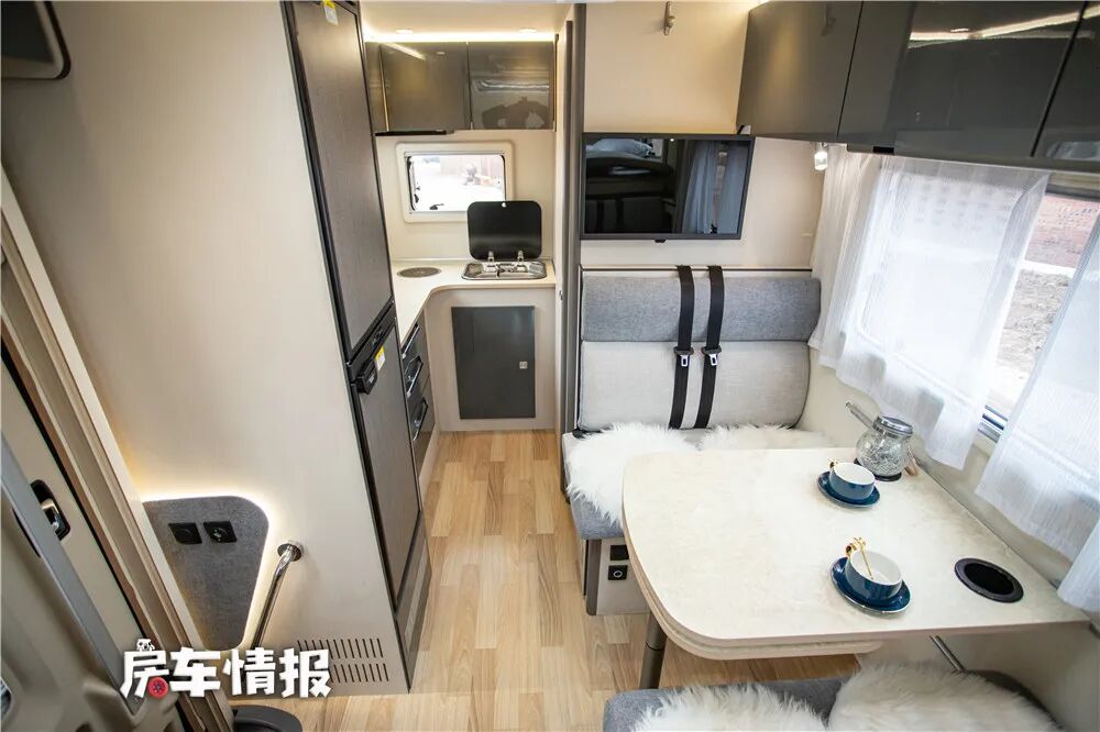 再来看看C7-C的内部布局,小窗的位置是卫生间所在的区域,而后方大窗对应的是一个大尺寸的U型卡座沙发,这样的布局对于长城炮来说绝对算是个创新,另外还有一点就是C7-C和曝光车型一样,都是基于单排驾驶室版本的底盘打造的房车,为此推断新款长城炮房车也会采用相似布局。并且曝光图片内显示,前方小窗下方是黑水箱储藏盒,那么不就正好对应内侧卫生间吗?