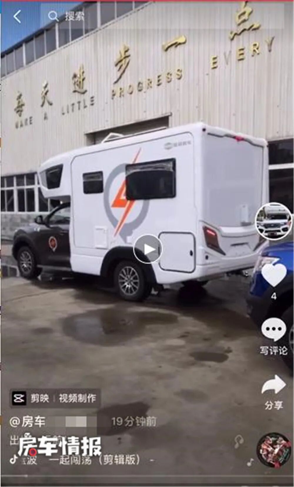 某一天我在无聊地刷着朋友圈,看到了一位览众房车工作人员发的“自由炮现车试驾”之类的消息,由于我前不久刚刚完成了自由炮房车1000多公里的自驾游,于是便点开了朋友圈,当我看到第一张图的时候,就发现了一些端倪,相信大家看到这样图觉得就是一张普通的车型外观,相信我继续往下看。