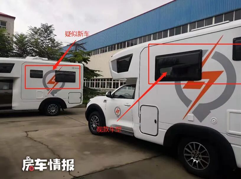 我又仔细看了一下现款自由炮的布局方式,可以确定的是图中右侧车辆为现款车型,因为现款车型生活区布局,前方就是大尺寸窗户,而右侧车辆个人猜测应该是采用了全新布局的长城炮房车(未来名字或许不叫自由炮,暂且称呼为长城炮房车吧~)。