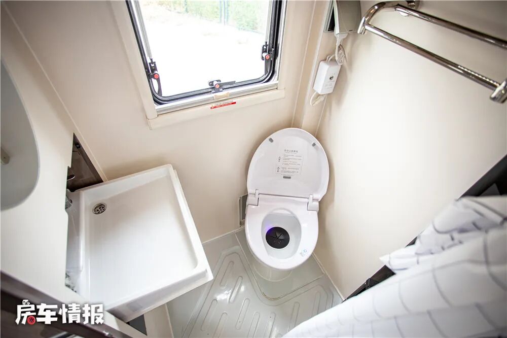 中门后方的位置则变成了一组储物柜和卫生间,卫生间内部空间挺大,提供了折叠洗手盆、智能马桶、淋浴等设备,可以满足日常使用。