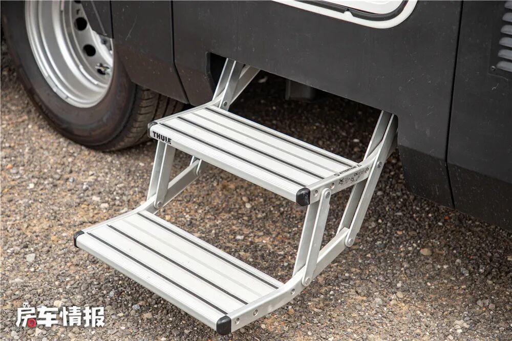 在车身外部也加入了一些比较常用的外部设备,如电动遮阳棚、外置柴油炉灶、2点电动驻车支腿、限高预警、外接电源输出插口、电动踏步等。