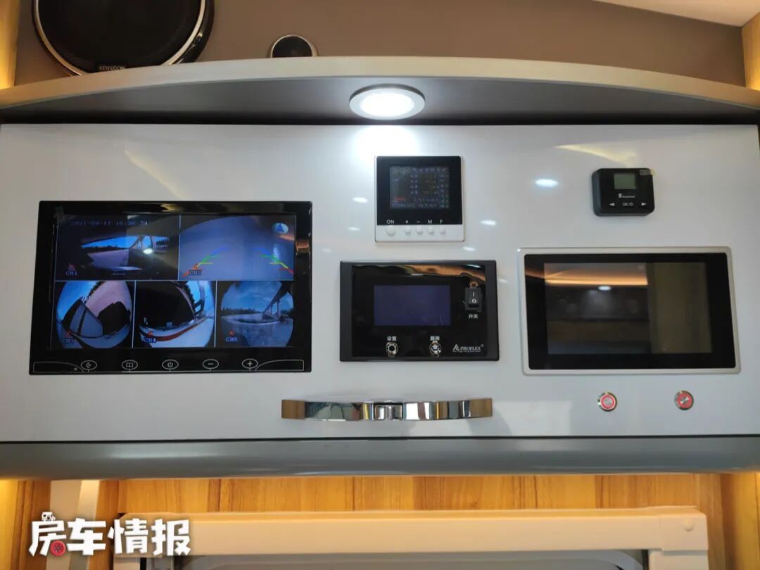 在电路上,这款房车搭载了一台3000W的逆变器,提供1000Ah的锂电池,同时在顶部还配备了600W的太阳能电池板,水路上则提供了200L的净水箱和70L的灰水箱。