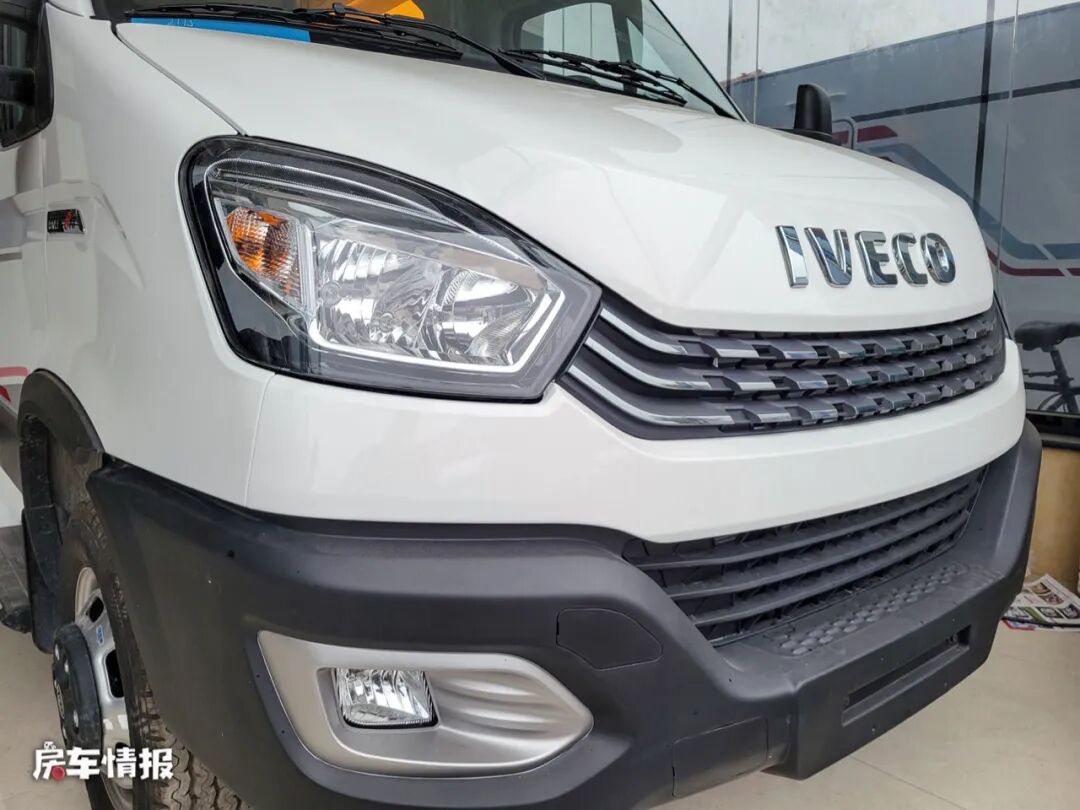 此次的瑞弗V800选择了2021最新款依维柯欧胜作为底盘,点阵式的设计相比老款依维柯更提升了美观和时尚感,全车采用大额头式的标准设计,尺寸方面长宽高分别为5990*2425*3200mm,属于比较常见的C型房车尺寸,超过3米的车身高度在平时行驶上路时需要注意限高的影响。
