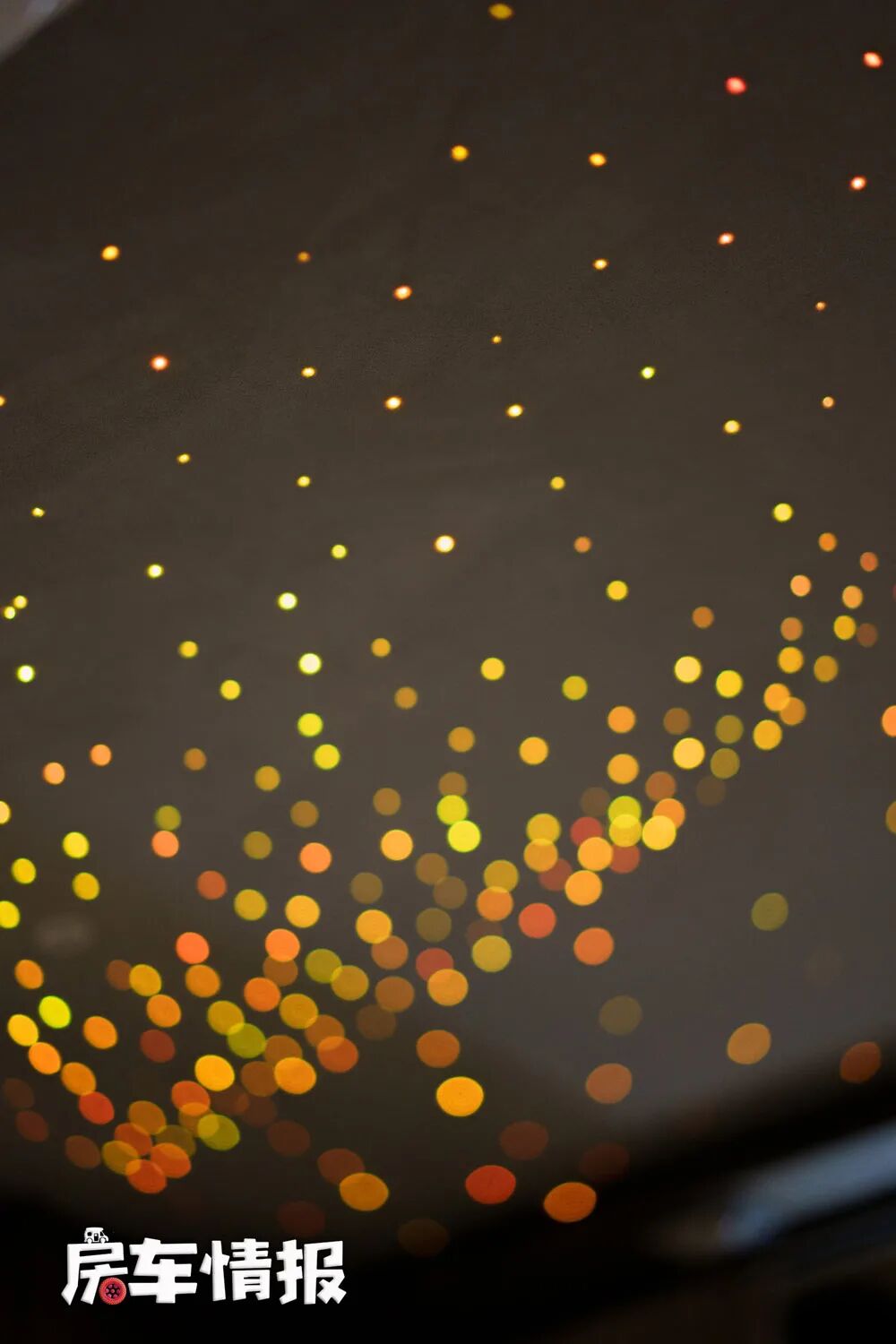 车顶采用了豪车内部才能见到的星空顶,如梦幻般的感觉,除此之外全车还使用了行业首创的丝印科技面板灯,更突显了设计的精致感和氛围感。