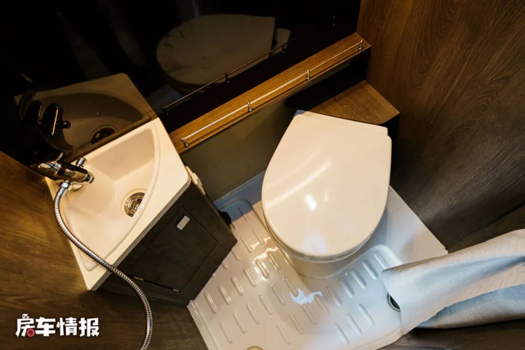 全车的卫浴室也区分普通的设计,采用了与车厢生活区更加融合协调的装饰型风格,使用了防水的GMT板材,可以提升整个卫浴室的使用寿命。