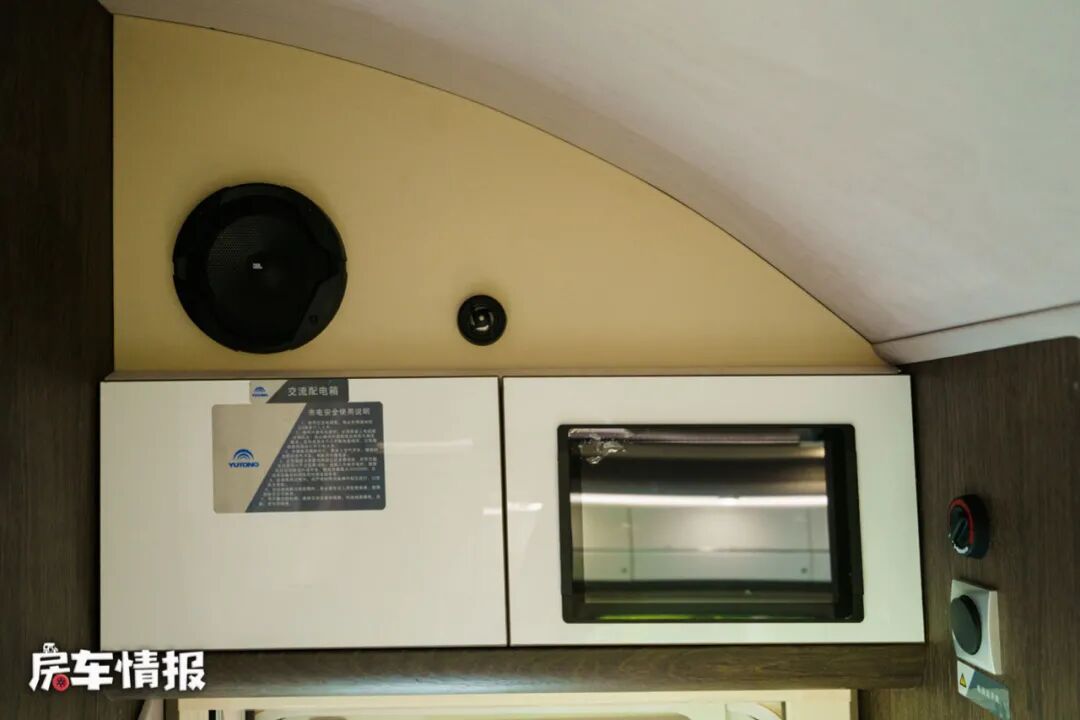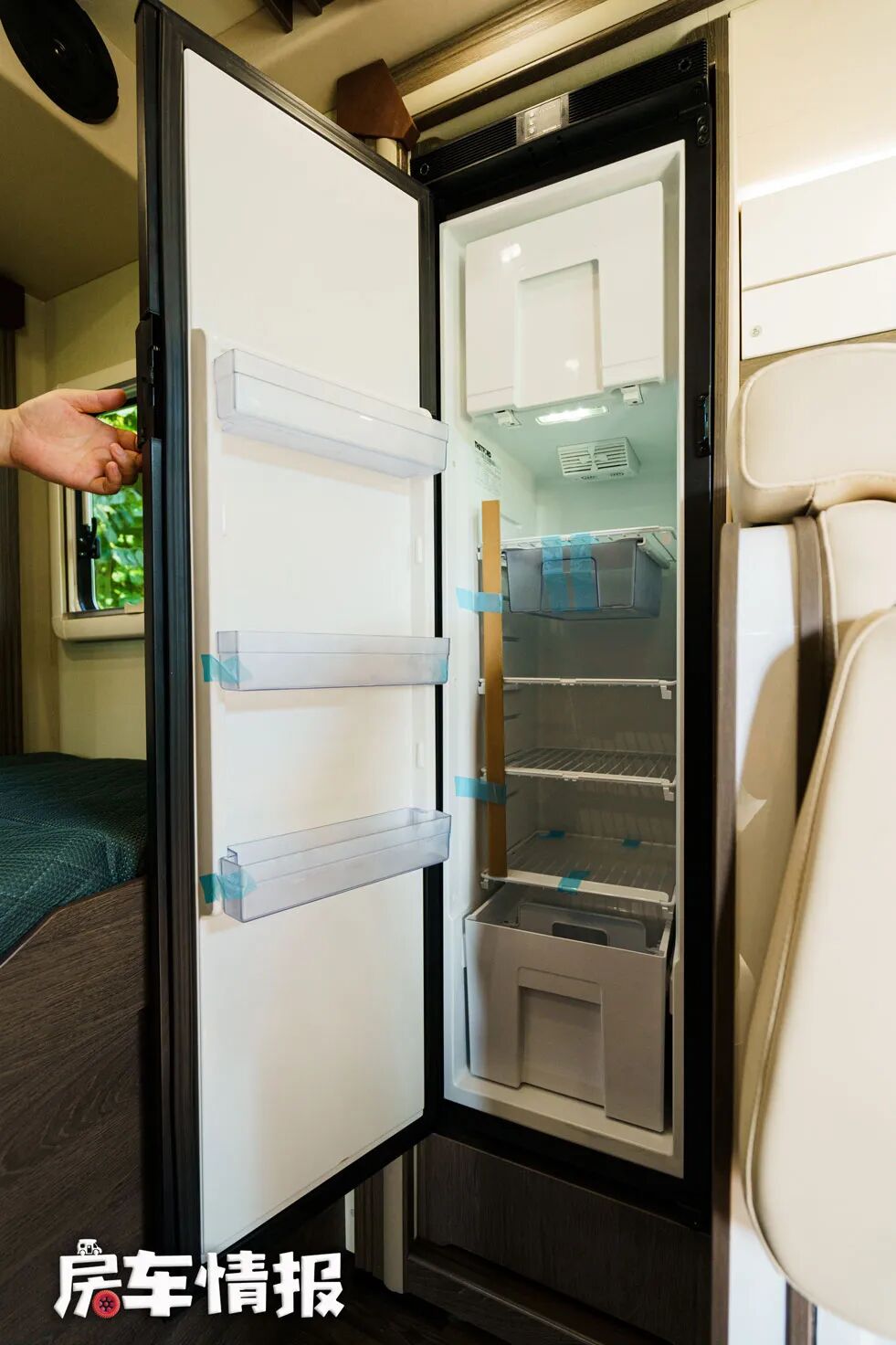 乘客沙发后方提供了一台容量达152L的单开门冰箱,内部含有单独的冷冻区域,后期也可以按需换成冷冻容量更大的142L空调,更符合国人的生活使用习惯。