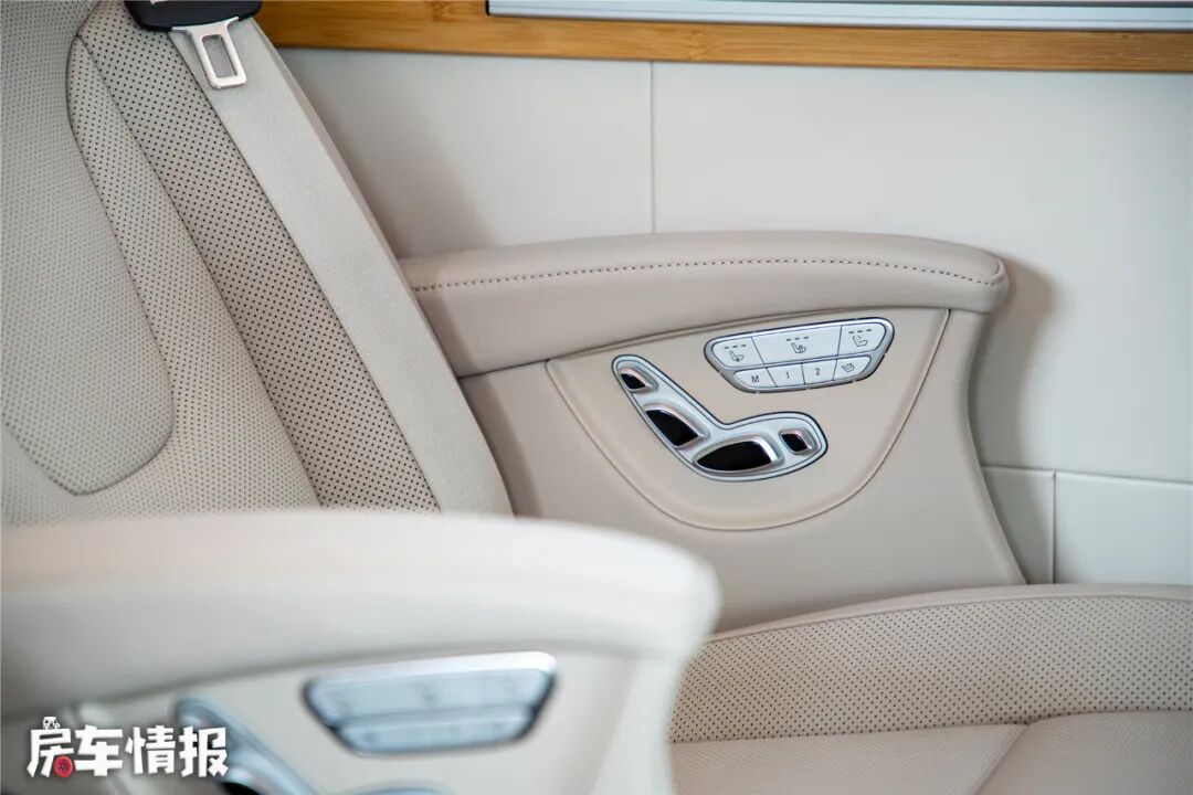 车厢中部的会客休息区采用了的两张独立的航空座椅,座椅的尺寸比较宽大,除了常规的点电动调节外,座椅还支持加热和通风功能,如此一来整辆车上的四张座椅全部带有加热功能,无论坐在哪个位置上都挺舒服。
