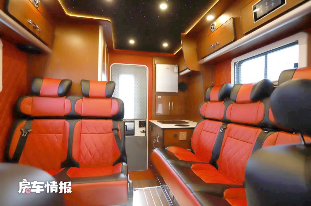 动力方面,这款房车搭载了一台2.4T的柴油发动机,匹配6挡手动变速箱,采用分时四驱系统,最大功率可达155kW,满足国六排放标准。