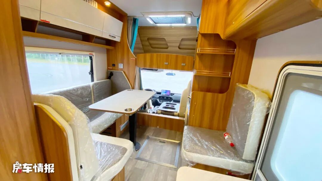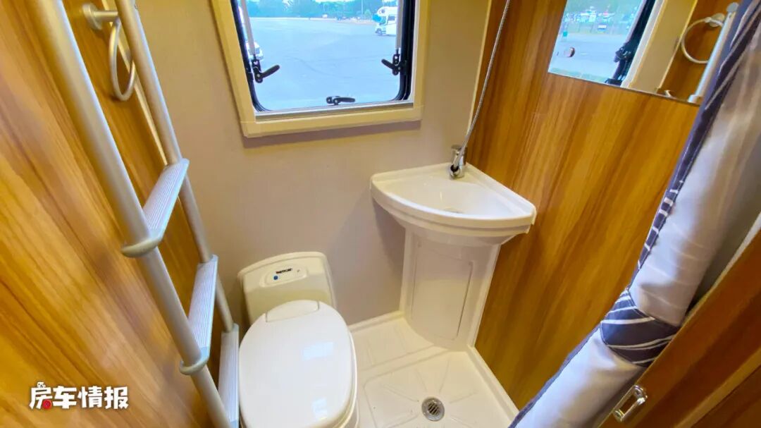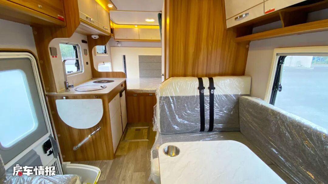 另外还有一个生活区的亮点,是这款房车配置了一台10kg的滚筒洗衣机,相比主流房车的mini洗衣机来说,容量更大,实用性更高。