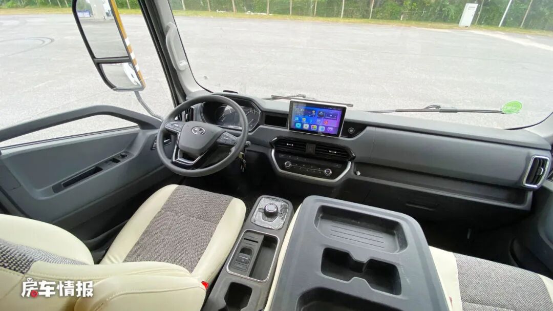 第三个亮点就是这款车的动力总成,与我们常见的上汽跃进H500底盘所搭载的动力系统不同的是,这款轻卡房车搭载了一台3.0T的昆明云内D30柴油发动机,最大马力可以达到170ps,最大扭矩能够达到500N·m,参数上已经超过了进口依维柯的3.0T动力,而且车内还采用了全新的电子旋钮式的档位设计,既美观也便于操作。